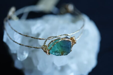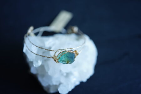 イングランド産の発光フローライトを、シンプルで華奢なフォルムのバングルにしました。