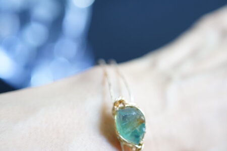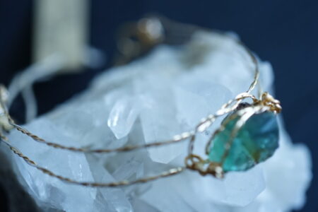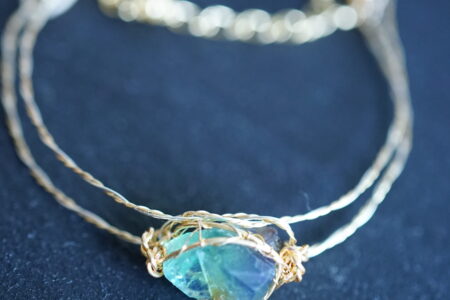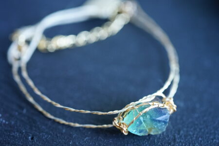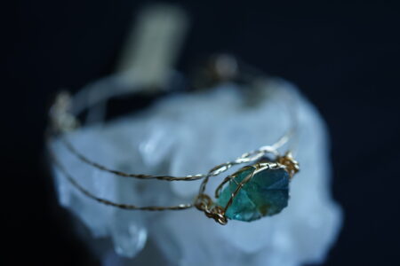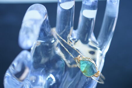 材料:発光フローライト(イングランド産 天然石),アーティスティックワイヤー(金色・銀色)